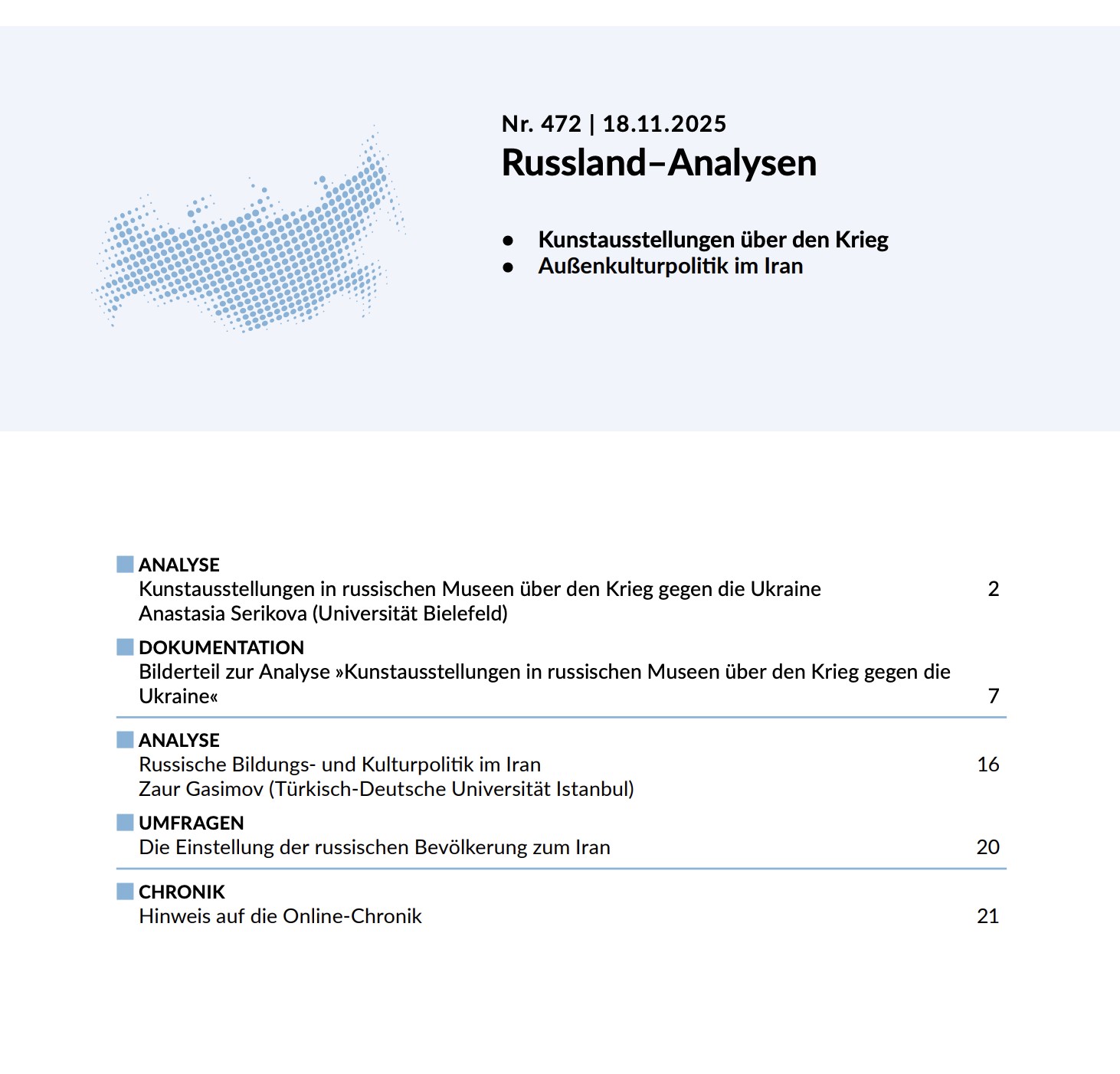 Analize şu linkten ulaşılabilir: https://laender-analysen.de/russland-analysen/472/bildungspolitik-kulturpolitik-iran-russland/