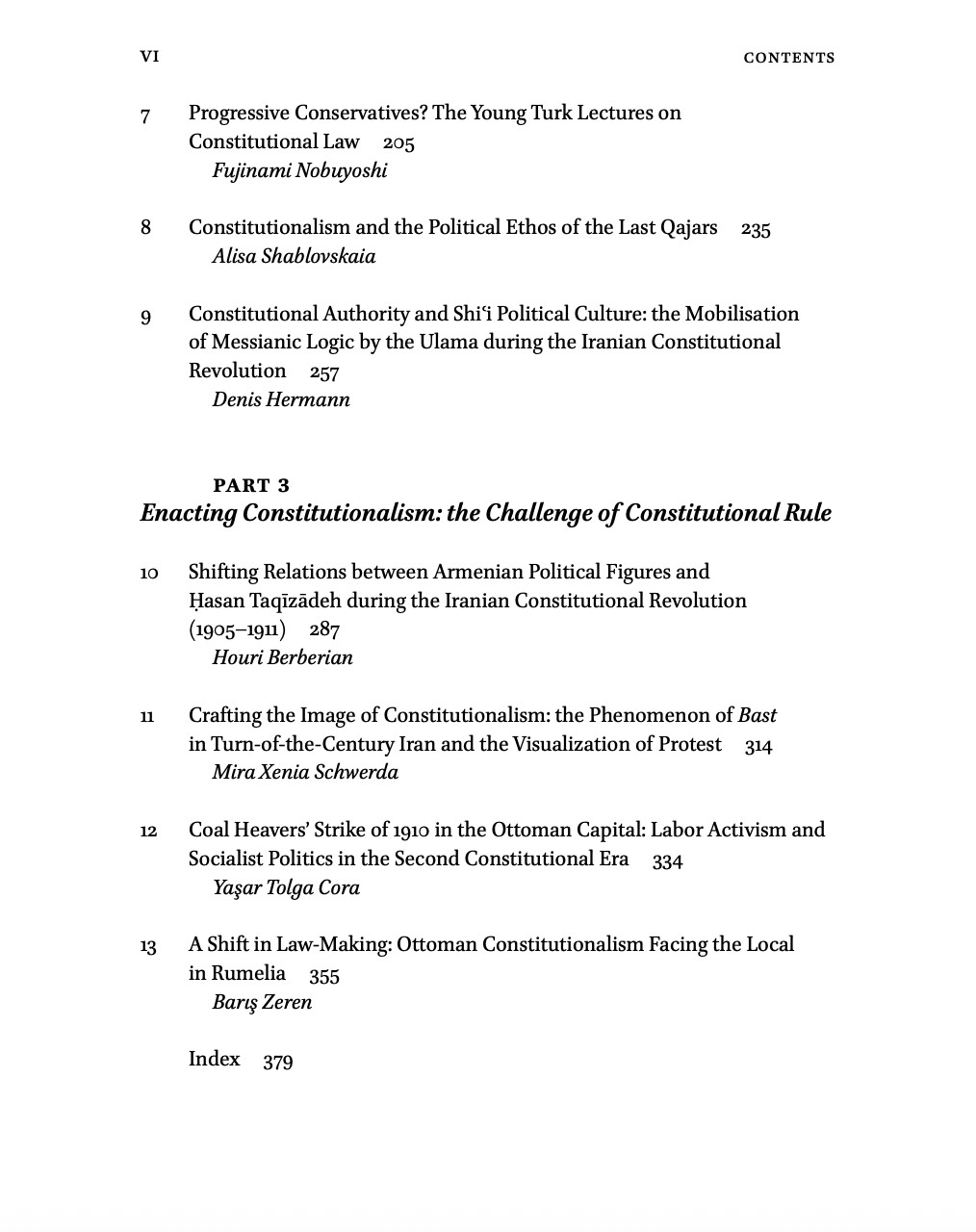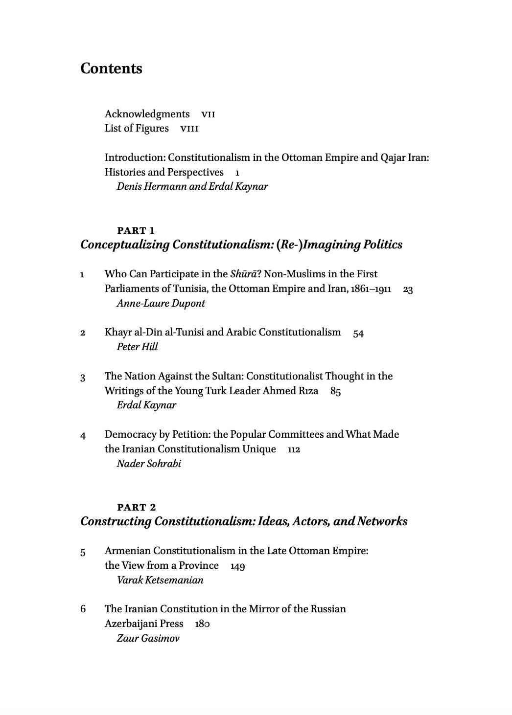 Brill Publishers tarafından yayınlanan ve editörlüğünü Denise Hermann ile Erdal Kaynar’ın yaptığı “Constitutional Dynamics and Political Transformation in the Ottoman and Qajar Lands in the Long Nineteenth Century” adlı kitapta Bölümümüz öğretim üyelerinden Doç. Dr. Zaur Gasimov’un da bir kitap bölümü yer almaktadır. Doç. Dr. Zaur Gasimov’un kitap bölümü “The Iranian Constitution in the Mirror of Russian Azaerbaijani Press” başlığını taşımaktadır.